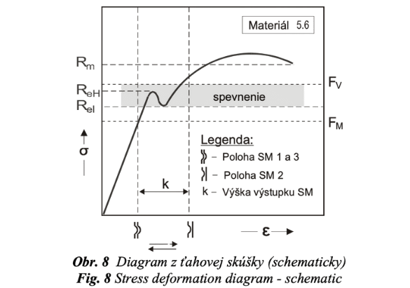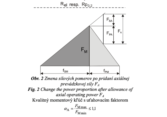 Potom je už priamo porovnateľné s medzou sklzu materiálu R po, 2 resp. R el. Podľa klasických názorov, reprezentovaných najmä odporúčaním VDI 2230, by sa mali skrutkové spoje uťahovať maximálne na úroveň 0,9 Rp 0,2 t.j. s 10%-nou bezpečnostnou rezervou. Najnovšie poznatky predovšetkým z automobilového priemyslu (ŠKODA AUTO, VW), ale aj niektorých výrobcov skrutiek ako je napr. RIBE [2], však príliš túto zásadu neuznávajú a skôr preferujú uťahovanie až na medzu sklzu, príp. ešte vyššie, využívajúc pritom uvoľnenie torzného napätia a tým aj σ ekv po odbúraní vloženého uťahovacieho momentu [3]. Pochopiteľne, takýto odvážny postup si vyžaduje určité predpoklady, ktoré je možné zhrnúť do nasledovných bodov: