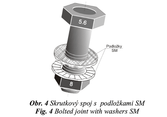 Prezentovaný systém montáže skrutkových spojov je založený na použití páru špeciálnych poistných podložiek z cementačnej ocele [6], montovaných pod maticu (obr. 4).