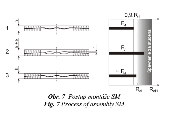 Ako vidno z obr. 7, prechod z polohy 1 do polohy 3 prebieha cez medzipolohu 2, kedy vlnovky vzájomne do seba nezapadajú, čo je doprevádzané krátkodobým natiahnutím skrutky o hodnotu k a montážnym spevnením za studena (obr. 8).